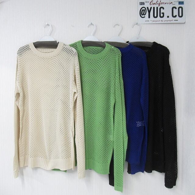 カギ編み 透かし編み ゆるかわ 春ニット オーバーニット ブルー
