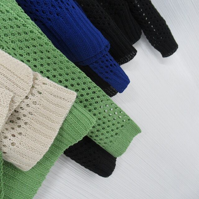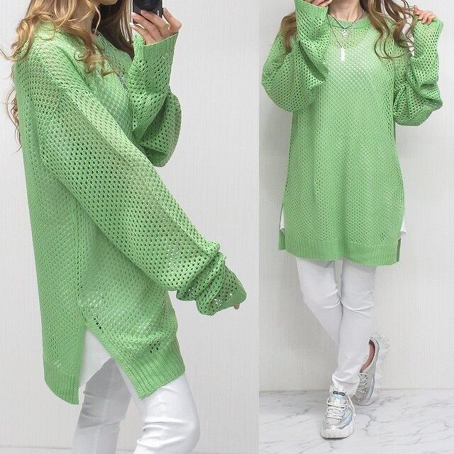 カギ編み 透かし編み ゆるかわ 春ニット オーバーニット グリーン