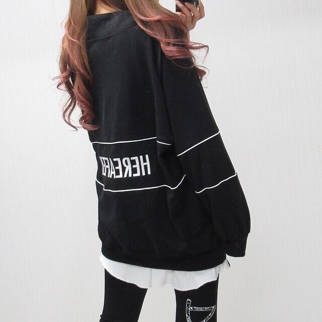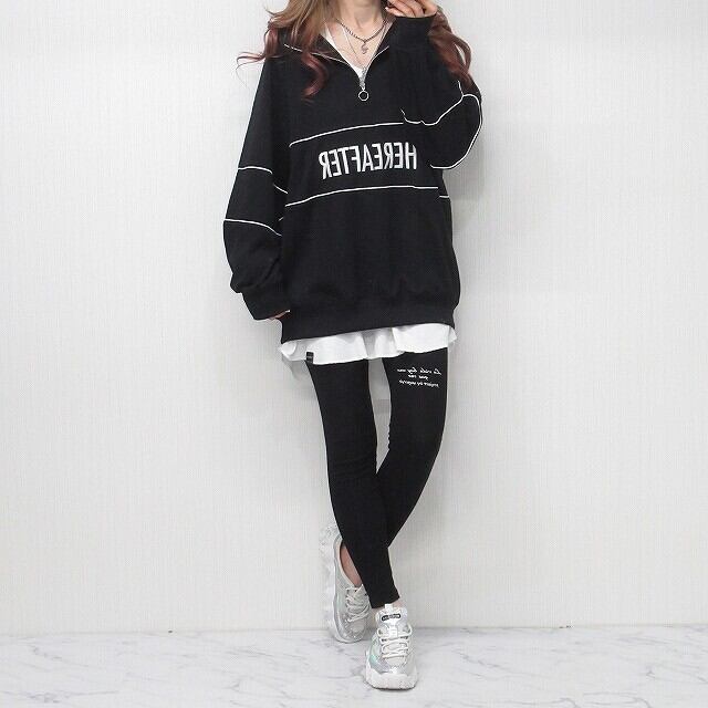ハーフZip ハイネック パイピング ロゴ刺繍 プルオーバー ブラック