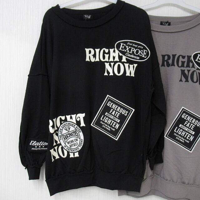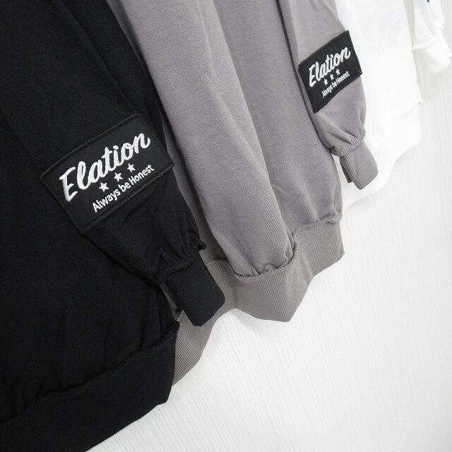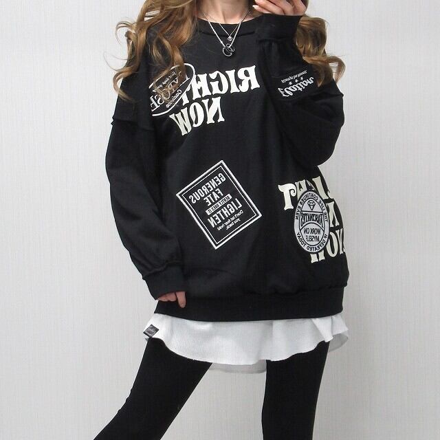 バックロゴ 袖 ワッペン刺繍 トレーナー プルオーバー オーバーサイズ ブラック