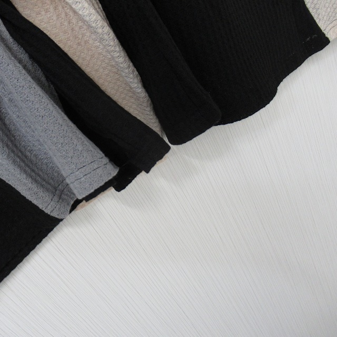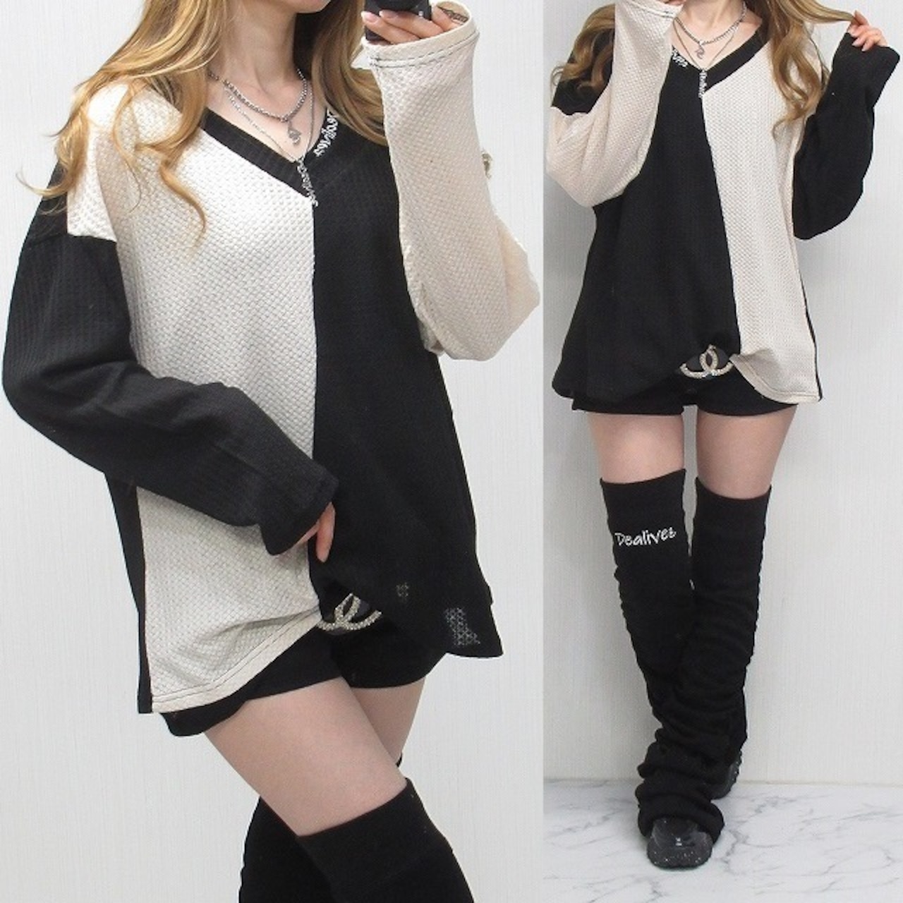 バイカラー 配色切替 Vネック ワッフル編み ニット Tops ベージュ