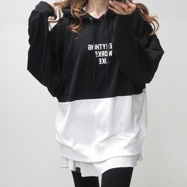 バイカラー 配色切替 バックロゴ ドルマン パーカー ユニセックス ブラック