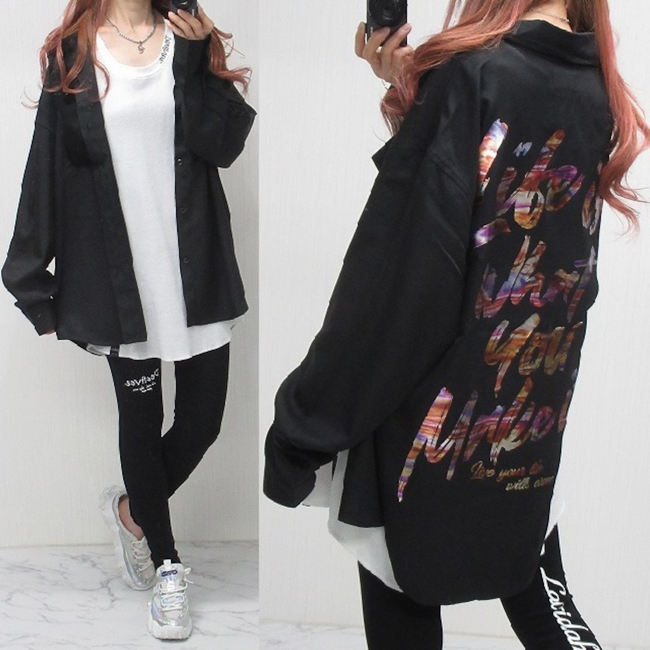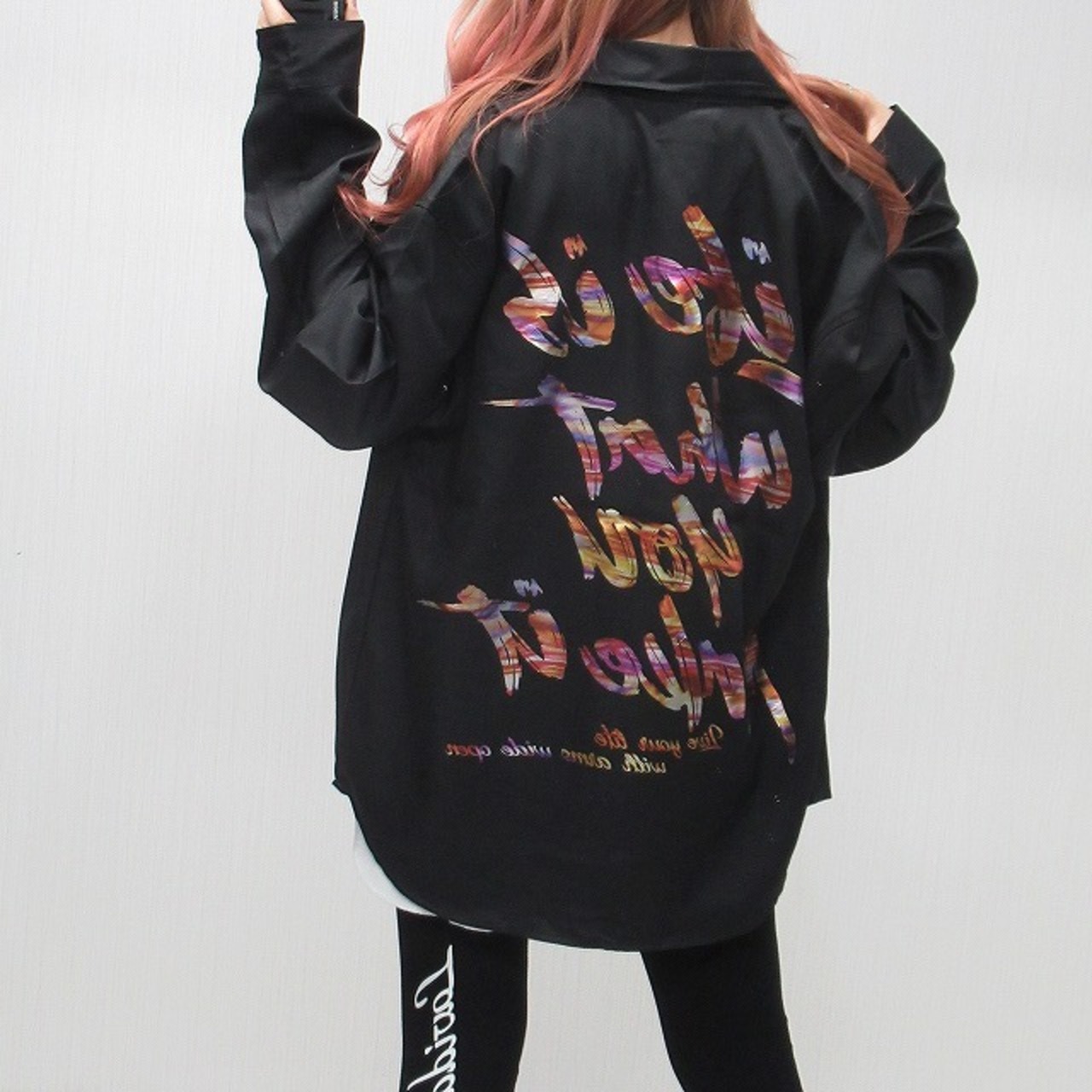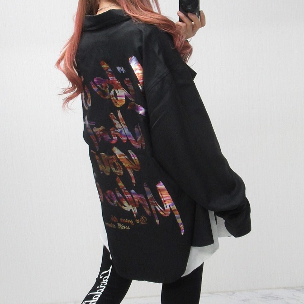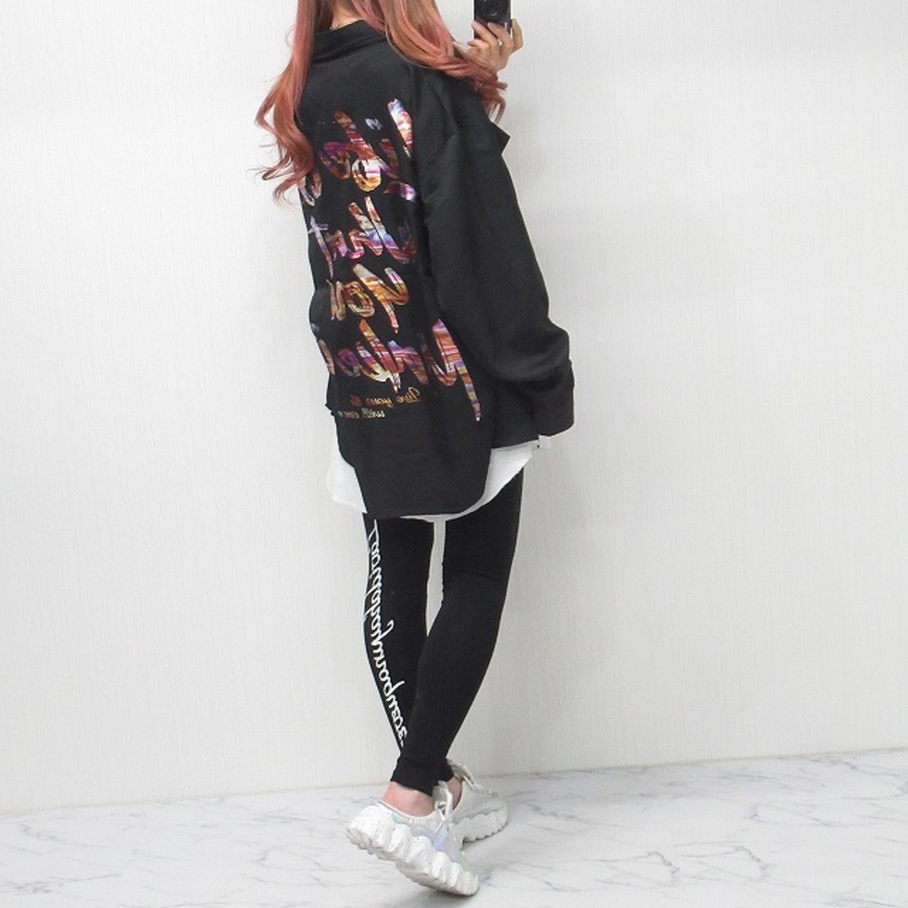 レインボーロゴ 箔プリント 胸刺繍&ポケット付き ストリート オーバーシャツ