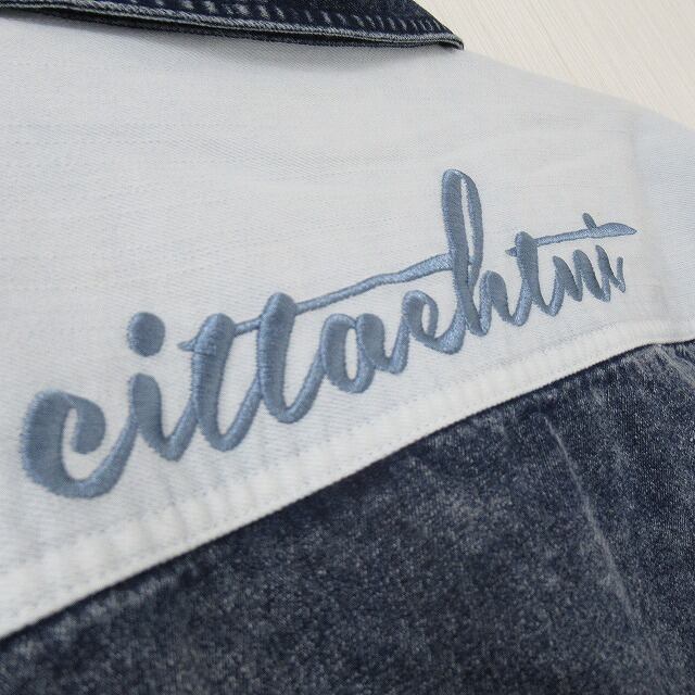 ラスト1!! ビンテージ風 Backロゴ刺繍 パッチワーク切替 レイヤード デニムシャツ オーバーシャツ