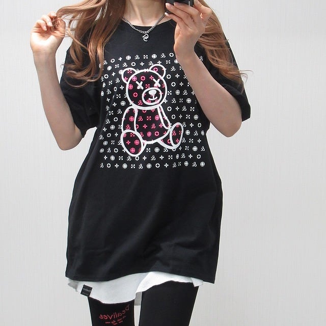 クマちゃん モノグラム柄 ポイントカラー Tシャツ ブラック