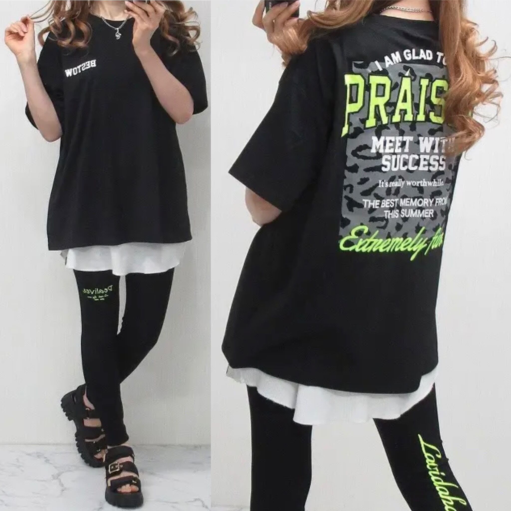 ヒョウ柄 レオパ 柄 Back刺繍 ネオンロゴ Tシャツ ブラック