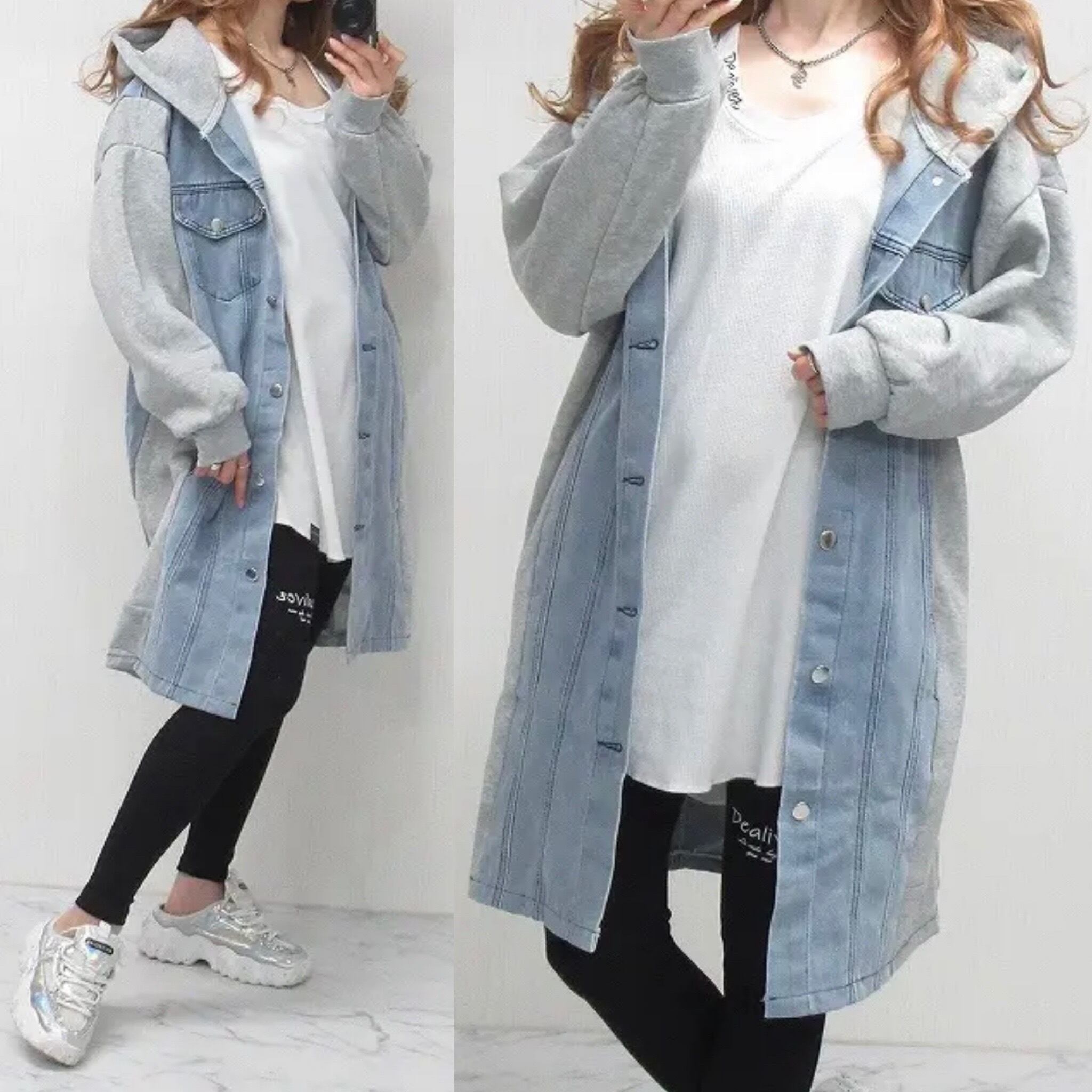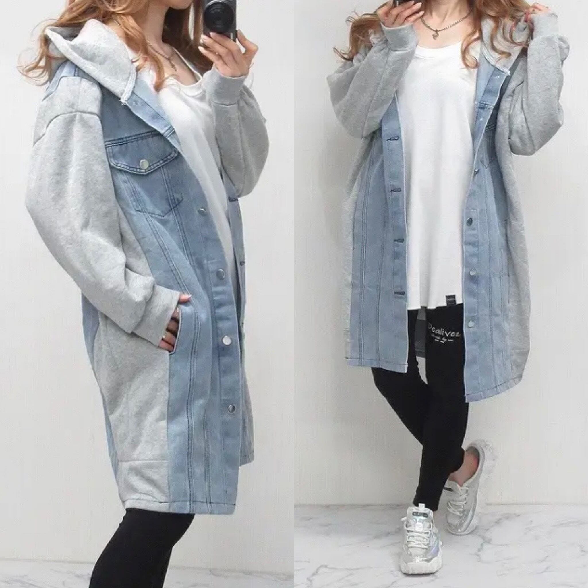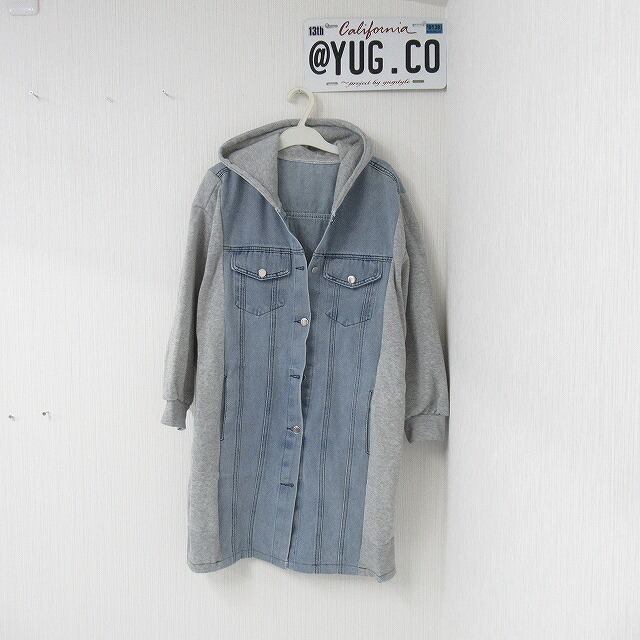 デニム切替スウェットの異素材ドッキング デザインがオシャレなデニムジャケット♪