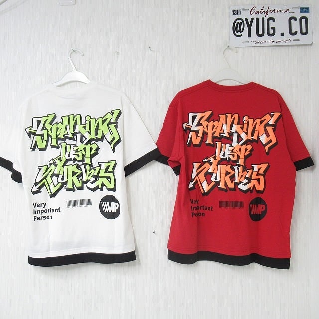 ストリート バック発泡ロゴ レイヤード Tシャツ ユニセックス レッド
