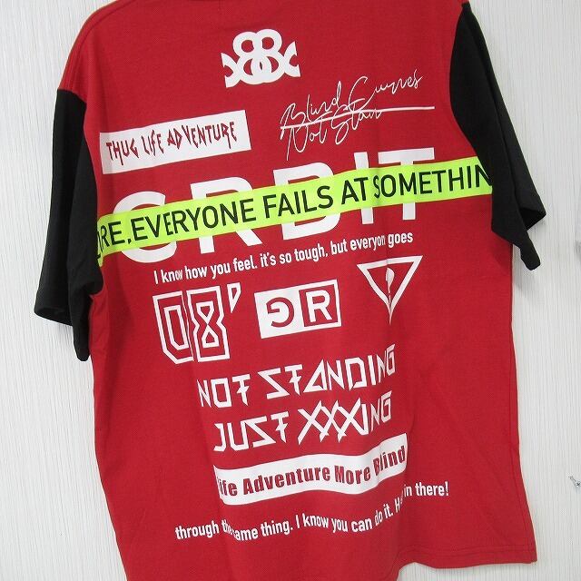 ストリート ネオン ライムLINEロゴ 配色切替 Tシャツ ユニセックス レッド