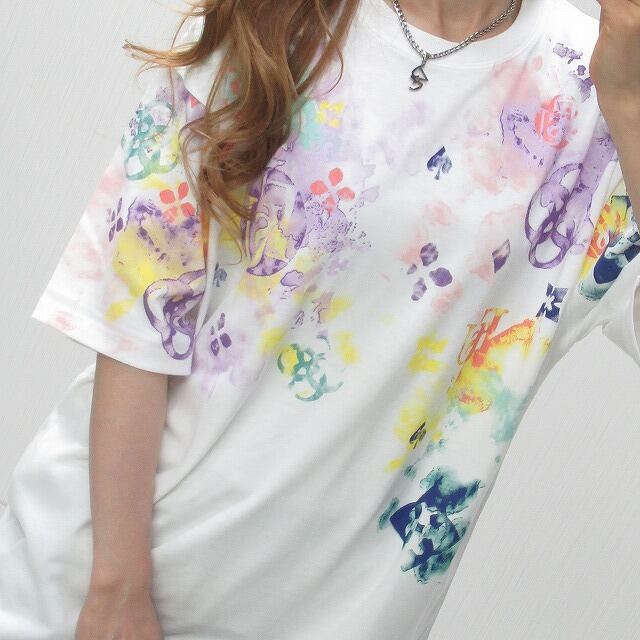 モノグラム柄 カラフル ムラ染タイダイ オーバーTシャツ ユニセックス ホワイト