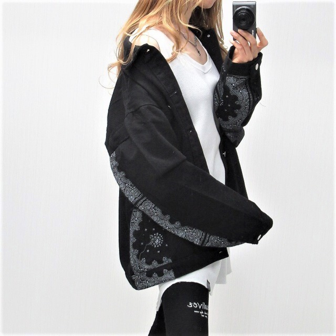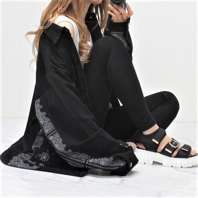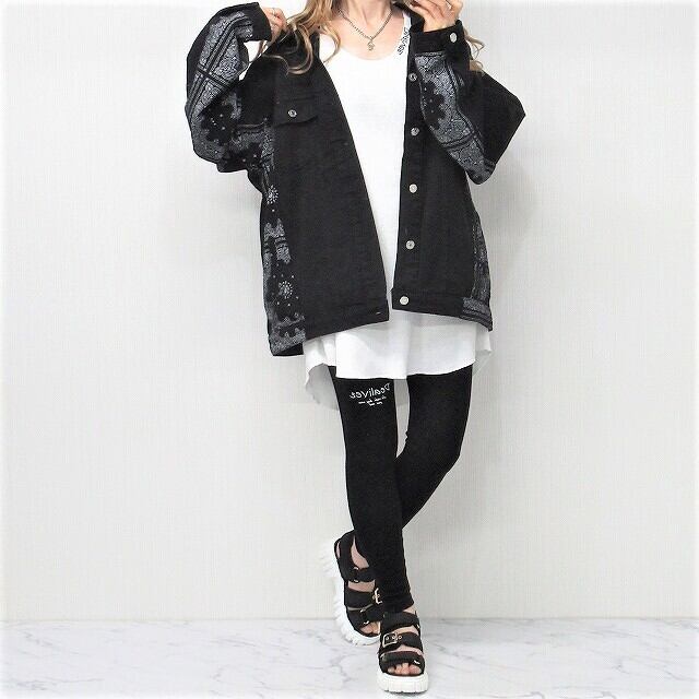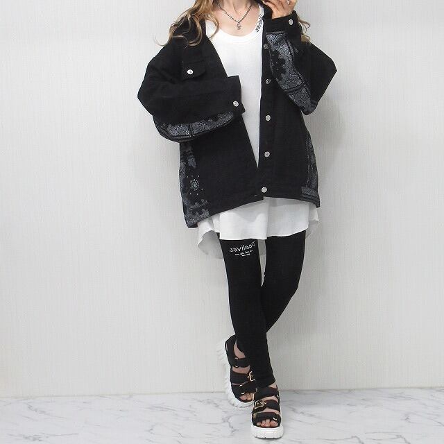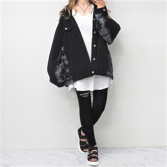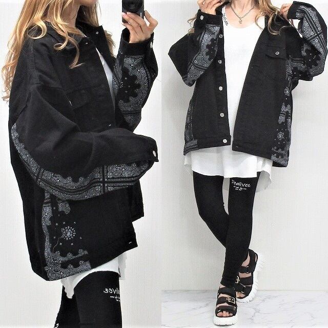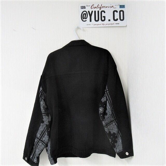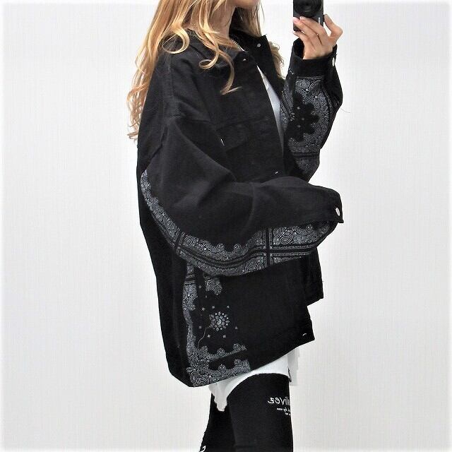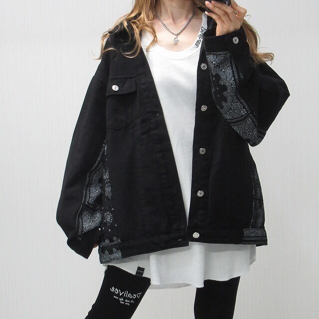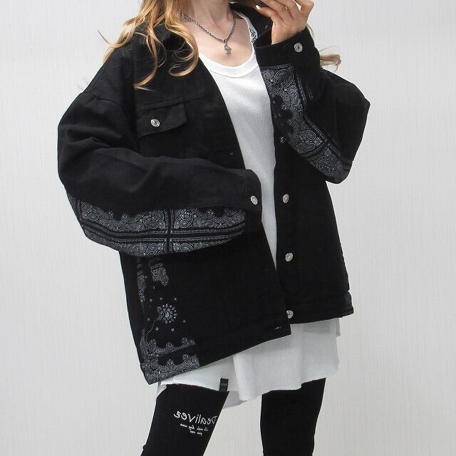 Side袖ペイズリー柄 切替 デニムジャケット Gジャン オーバーサイズ インポート