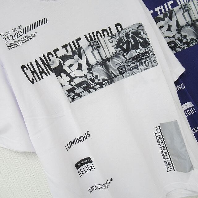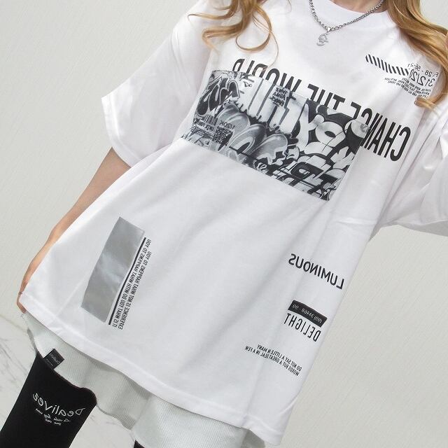 ストリート リフレクタ デコレーション バックロゴ オーバーTシャツ ユニセックス ホワイト
