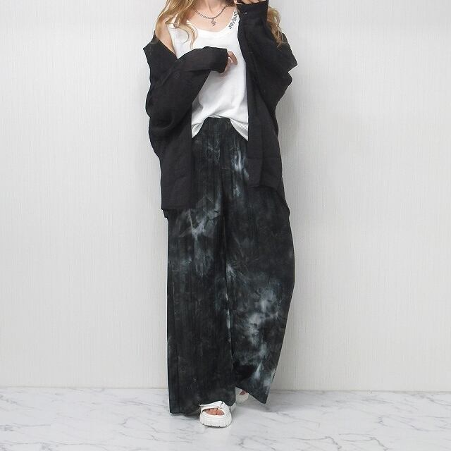 タイダイ柄 ムラ染め プリーツ フレアボトム とろみパンツ