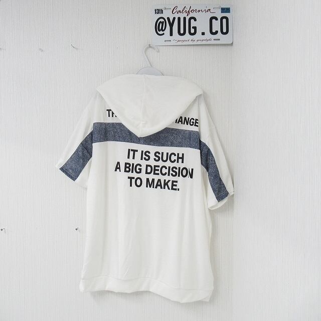 FrontハーフZIP開閉 Backデニムライン切替 ロゴ パーカー オーバーシルエット ホワイト