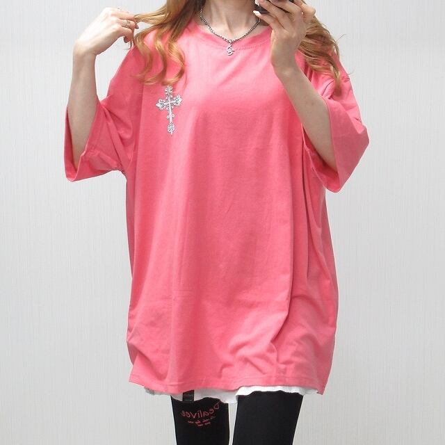 タトゥ クロス 翼フェザー wing Tシャツ ピンク インポート