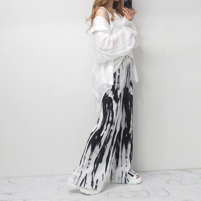 プリーツパンツ タイダイ柄 グラデーション フレアボトム とろみパンツ