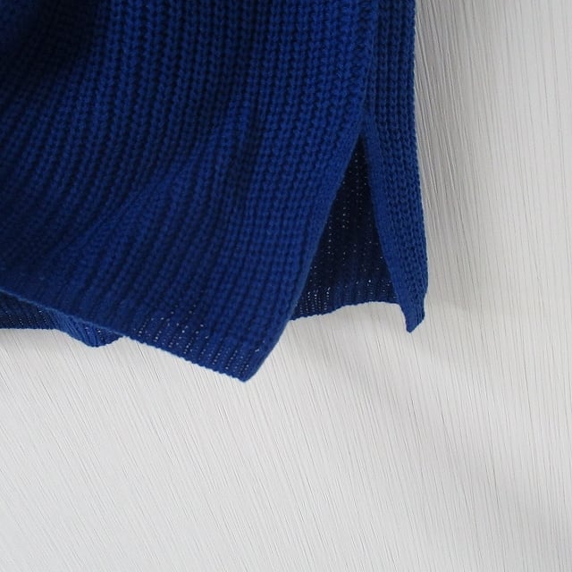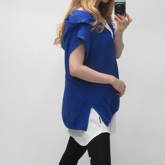 フード付 Vネック ゆるカワ ニットベスト ブルー