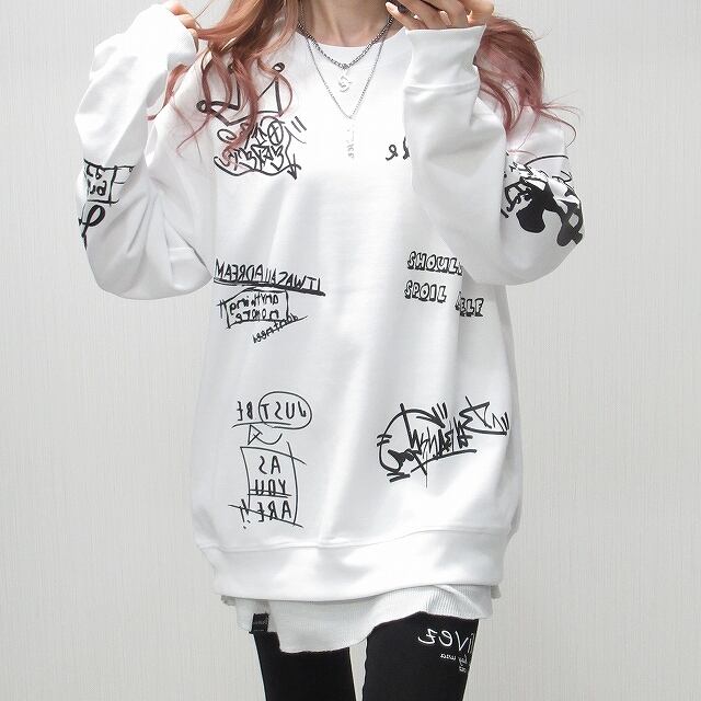 ロゴ総柄 ニコちゃん トレーナー オーバーシルエット ホワイト