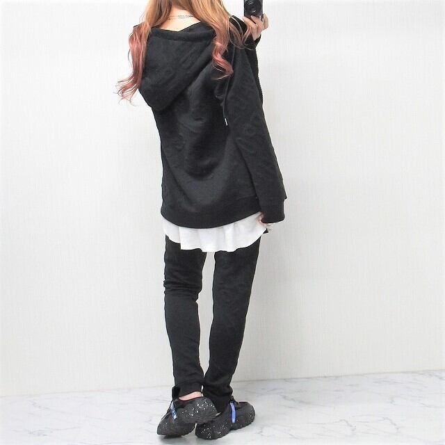 【SET UP】上下セット ハイネックZIP エンボス加工 パーカー&パンツ ブラック