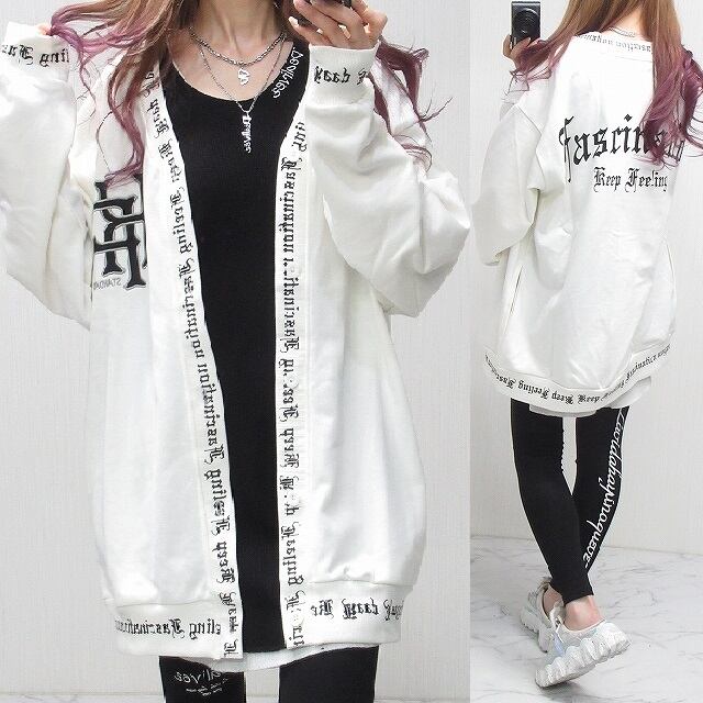 リブロゴ 刺繍ワッペン スウェット カーディガン オーバーシルエット ホワイト