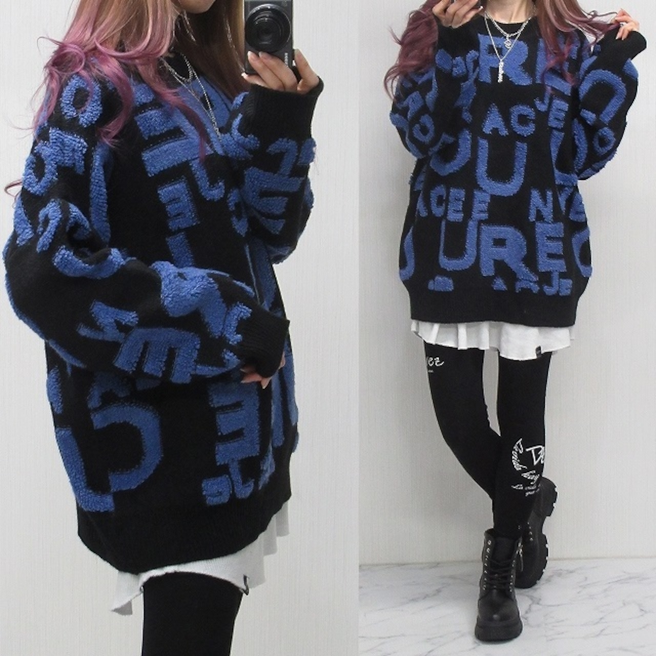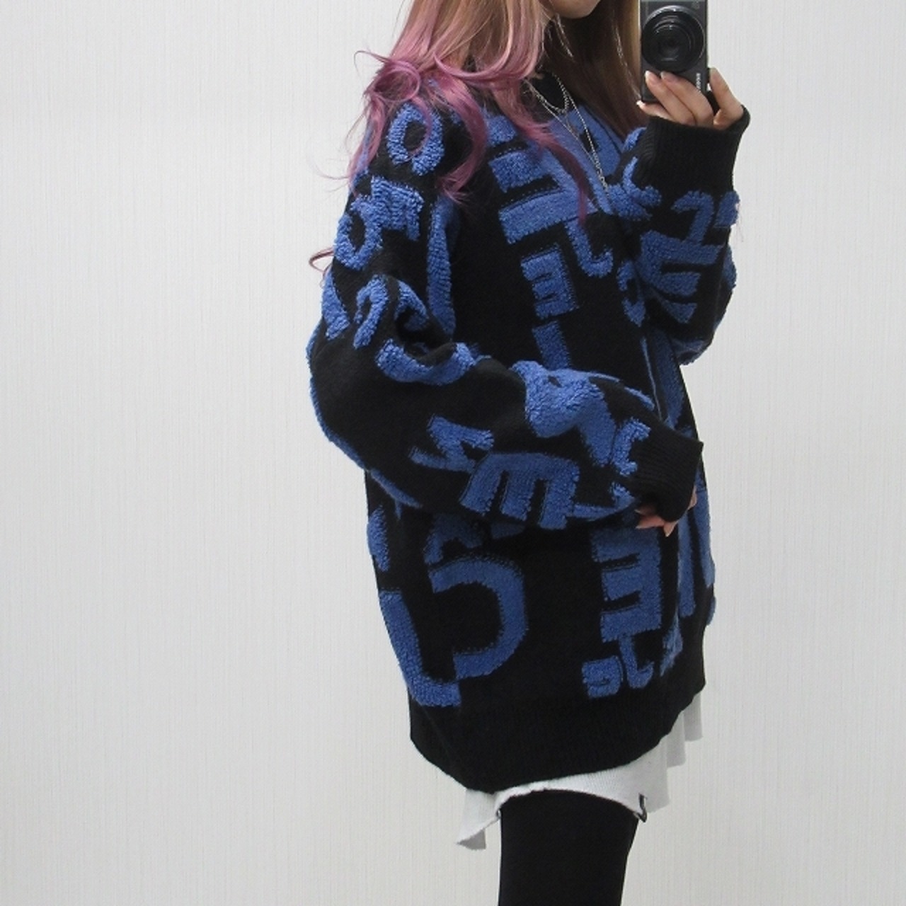 サガラロゴ 総柄 バイカラー 肉厚 ニット オーバーシルエット ブルーロゴ
