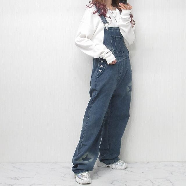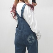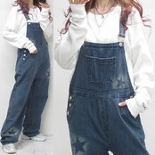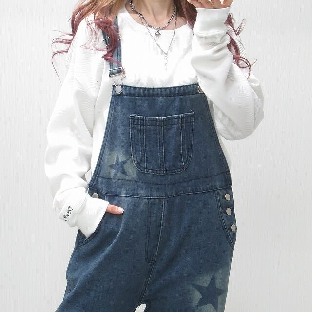 星柄がオシャレなデザインのデニムサロペ/オーバーオール ♪