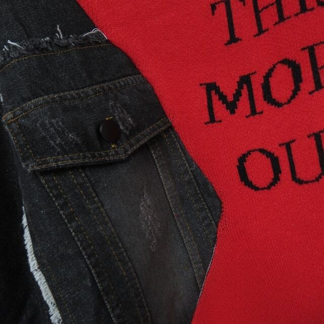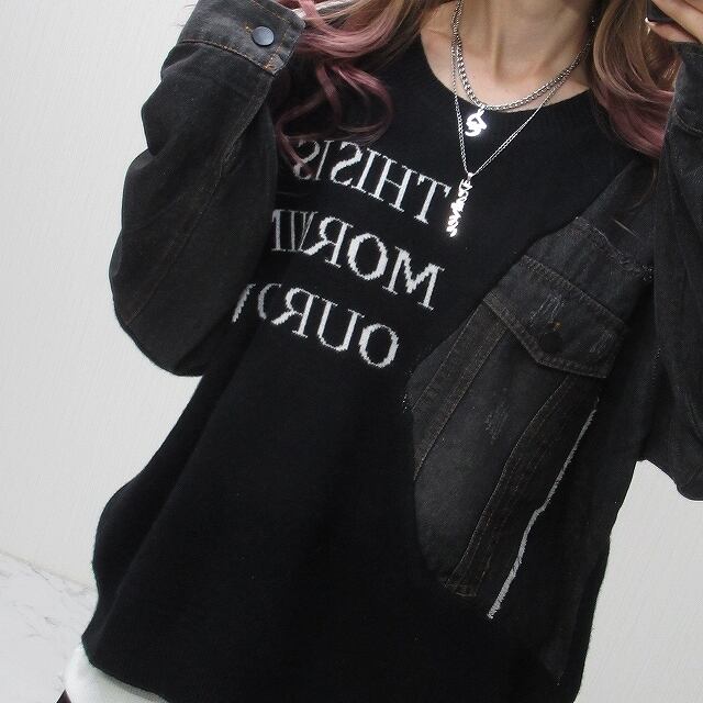 デニム切替ニット Frontロゴ 重ね着 一体型 レイヤード もっちり ニット ブラック