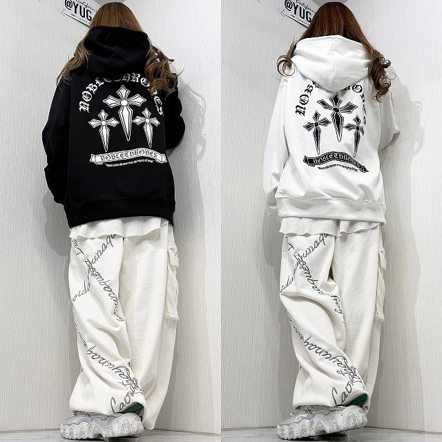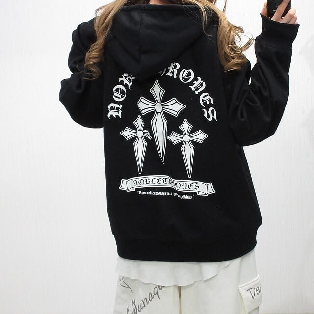 タトゥ バック クロス 十字架 Y2K ストリート BIGパーカー ユニセックス