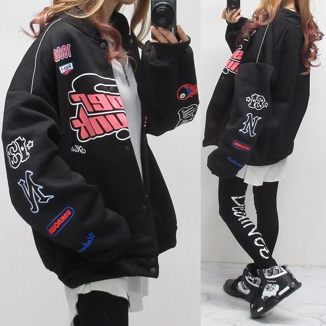 袖ロゴ ストリート スタジャン ブルゾン あったか裏起毛 インポート