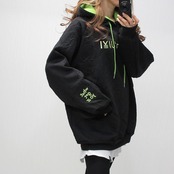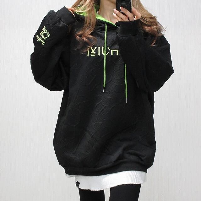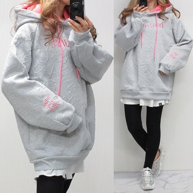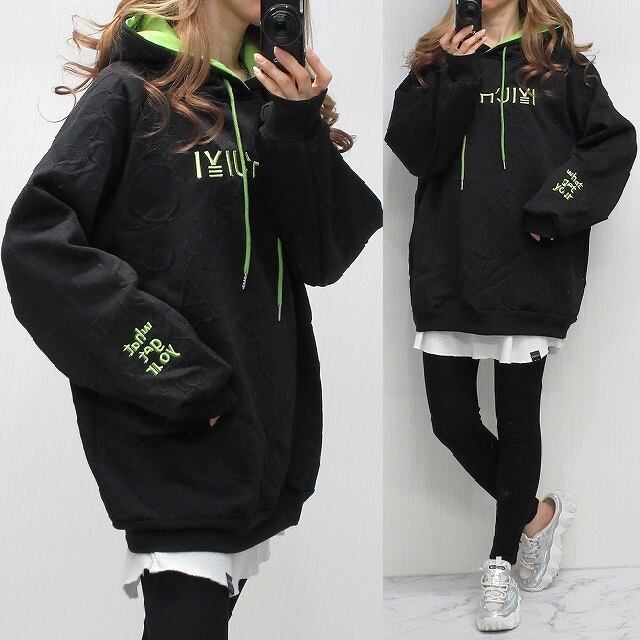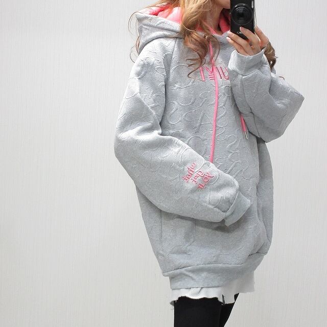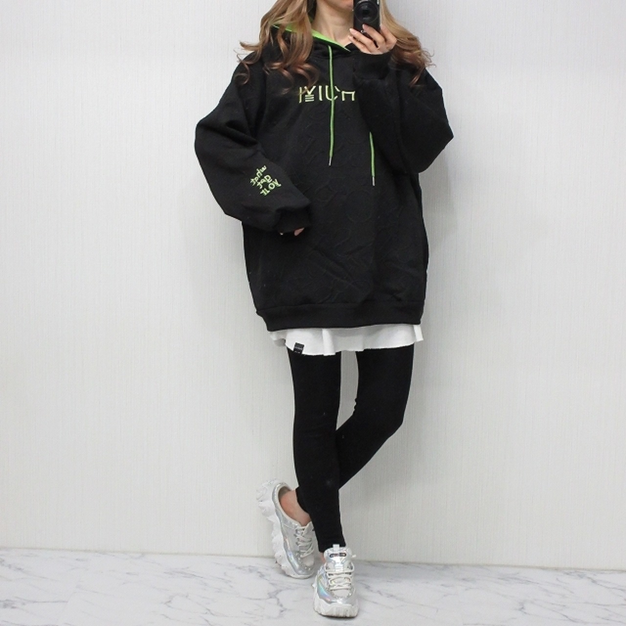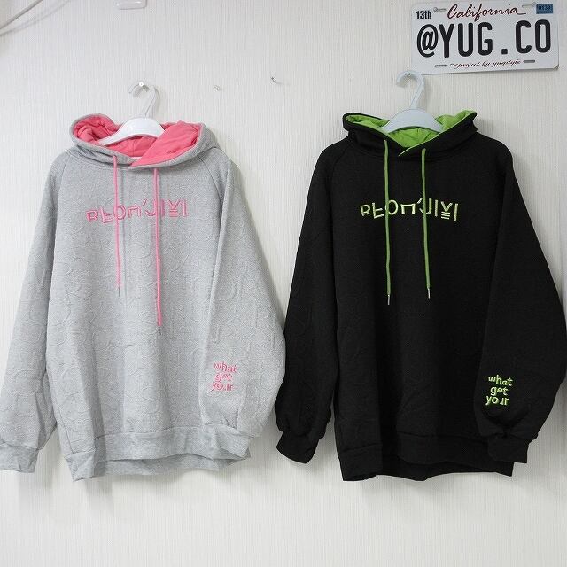 エンボス ロゴ刺繍 ポイントカラー 肉厚 厚手 BIGパーカー ユニセックス