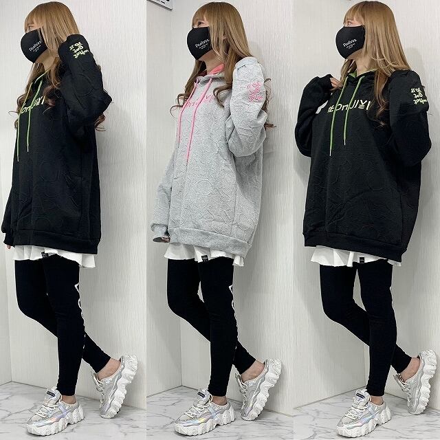 袖&Frontロゴは刺繍になっており、フード裏と紐カラーのポイントカラーがオシャレ感抜群です!