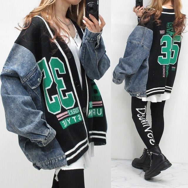 もっちり肉厚ニットにデニム生地はしっかりGジャン生地ですが柔らかな生地感です⭐︎