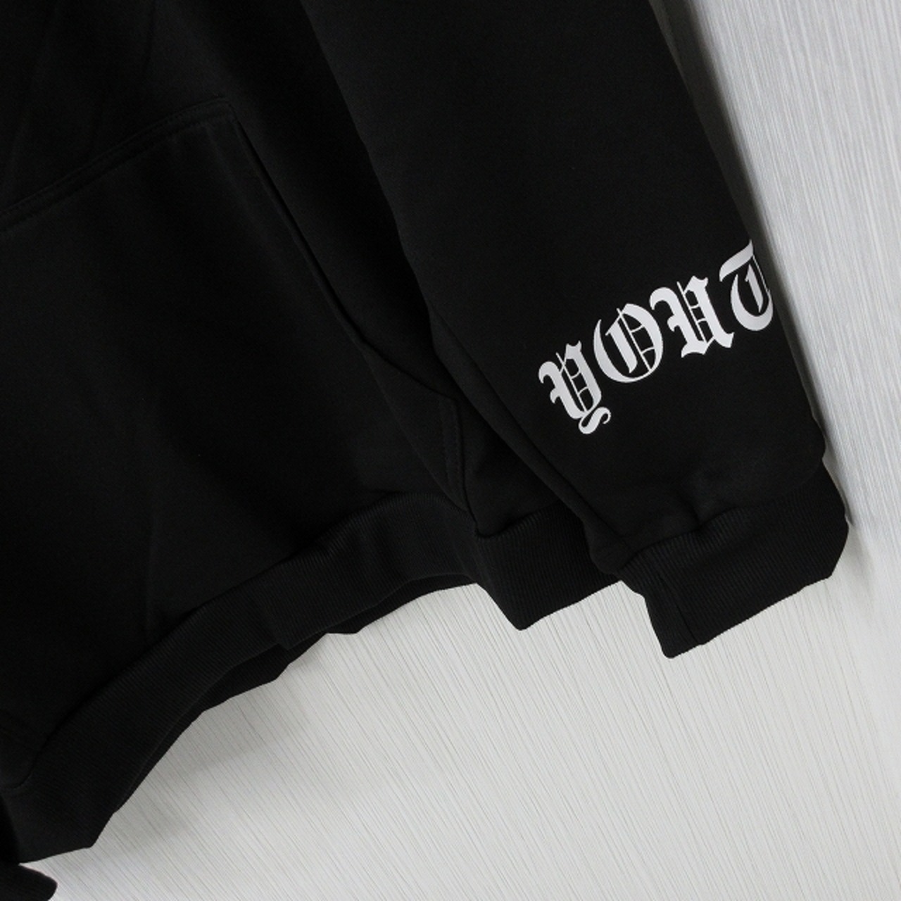 スカル ドクロ オールドイングリッシュ 袖ロゴ&バクプリ パーカー BIGシルエット インポート