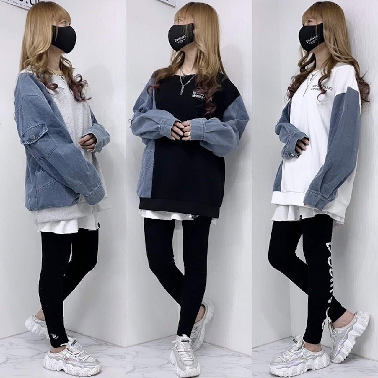 デニム切替スウェットのパッチワークデザインがオシャレ感抜群♪♪