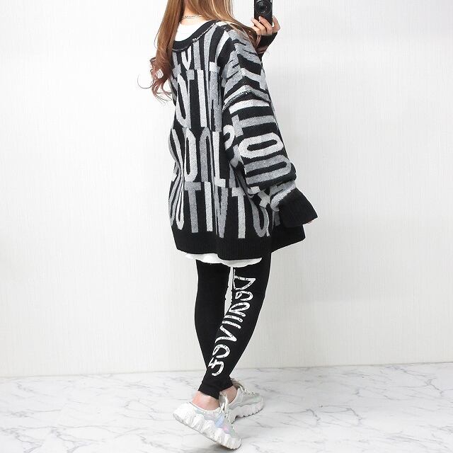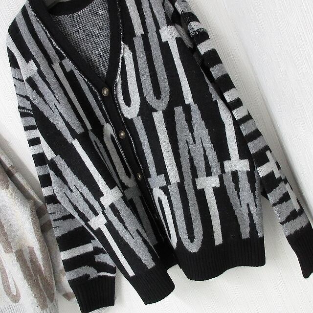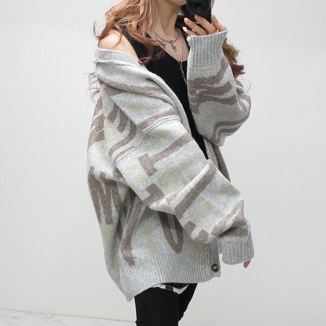 ロゴ総柄 もっちり柔らか ニット カーディガン オーバーシルエット