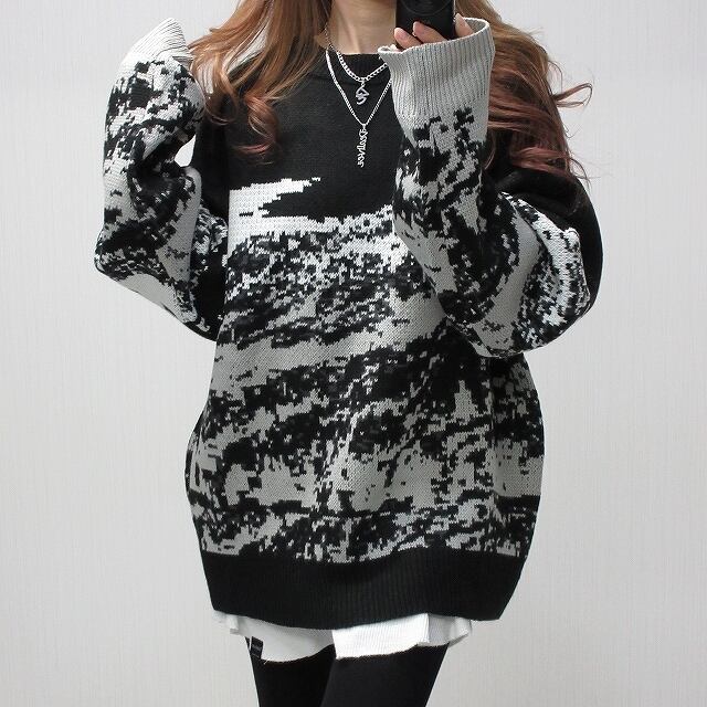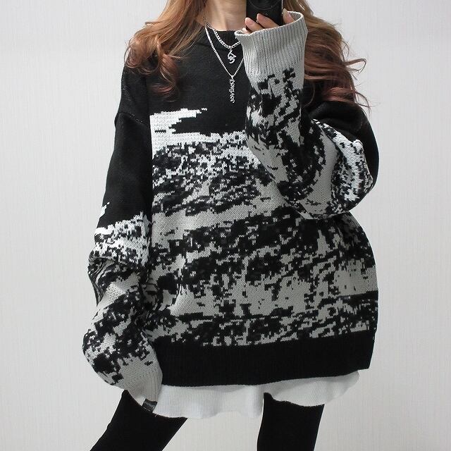 ストリート デジタル グラデーション ニット オーバーシルエット
