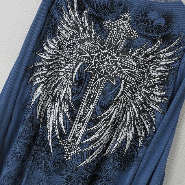 タトゥ クロス サブリメーション ロンT カットソー ブルー インポート