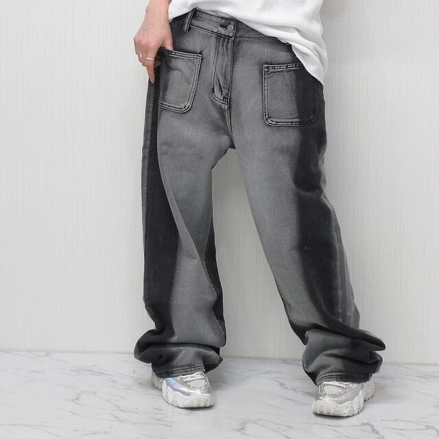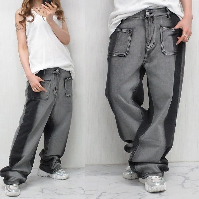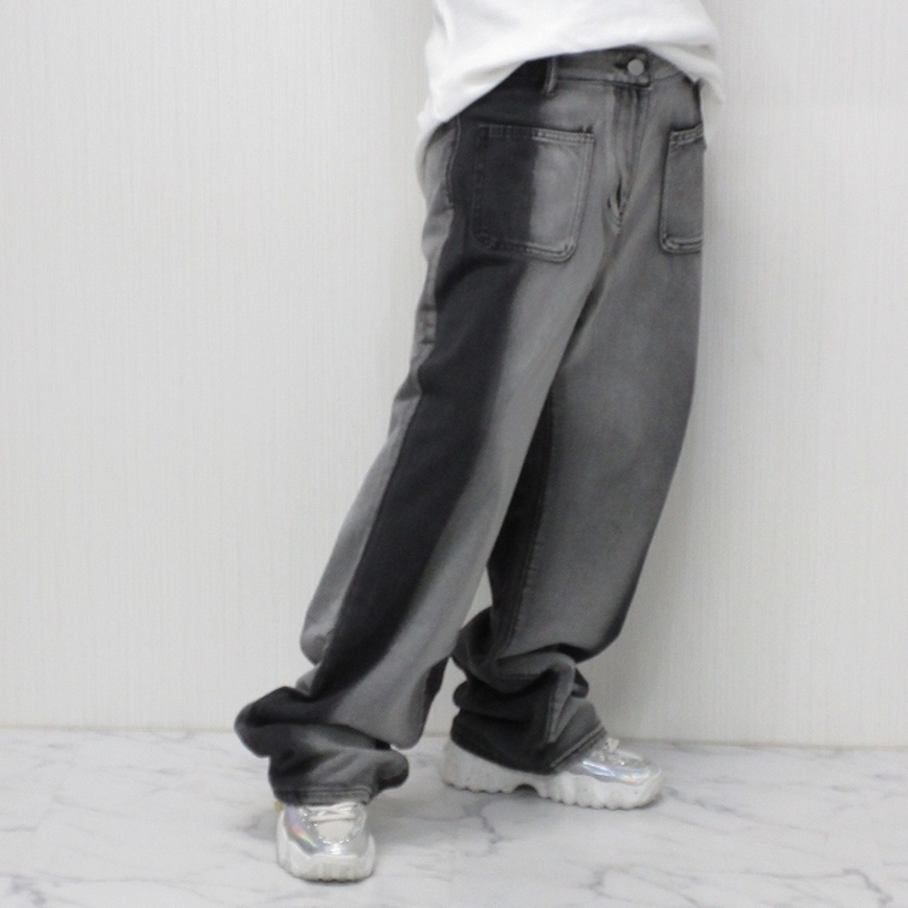 前後ポケット 配色染め加工 Wide ワイドデニム ビンテージ BOYSデニム デニムパンツ