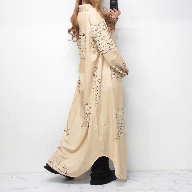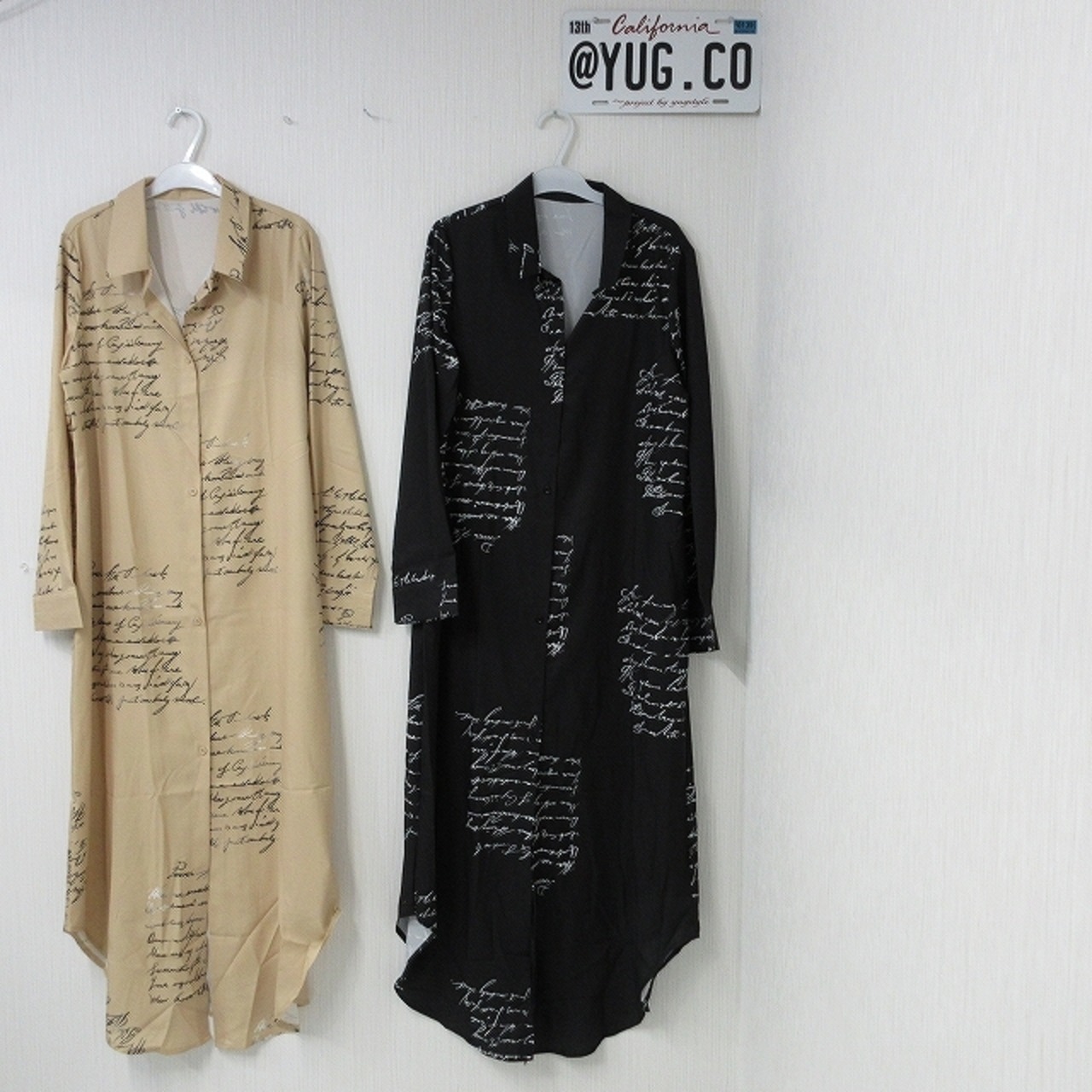 ロゴ Sideスリット ラウンドカット ロングシャツ シャツワンピ マキシワンピ ブラック・ベージュ