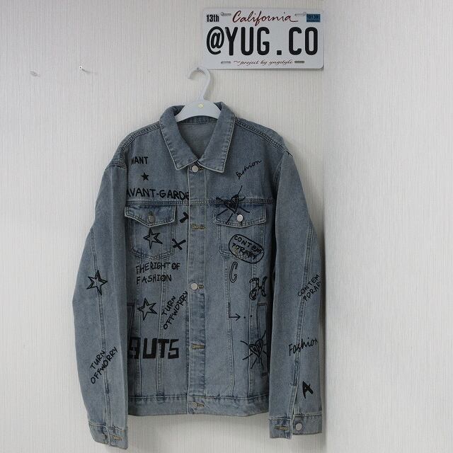 ストリート デコレーション 落書き 総柄 デニムジャケット BIGシルエット Gジャン インポート