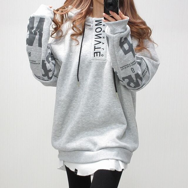 Frontロゴ刺繍&袖レイヤード風ロゴでオシャレなBIGパーカー⭐︎