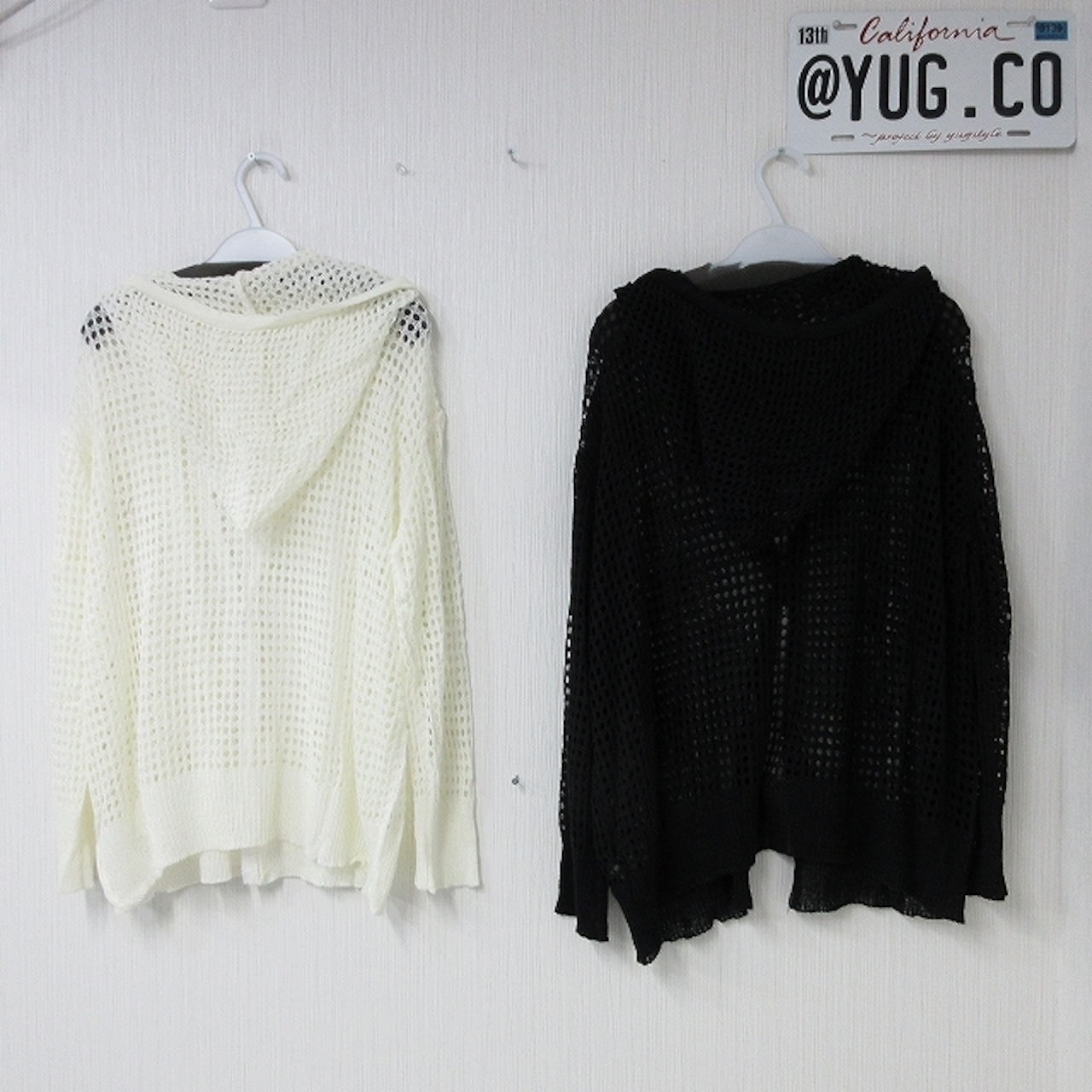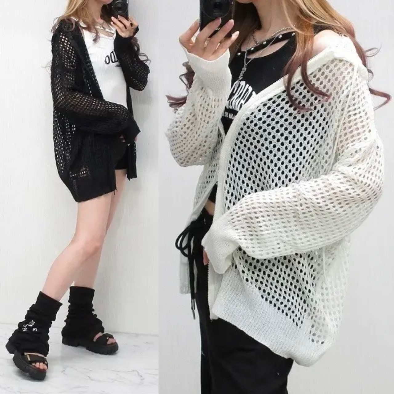 指穴あき 鍵編み メッシュ 透かし Wzip パーカー