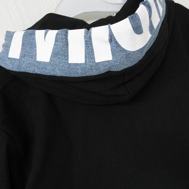フードロゴ デニム切替 ドッキング パーカー プルオーバー