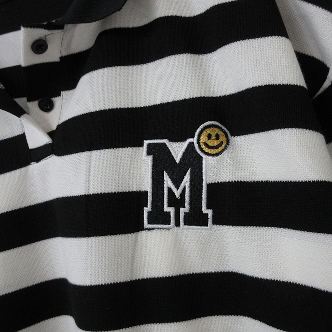 ボーダー配色 ニコちゃん 胸ワッペン&バックロゴ 衿付き ポロシャツ