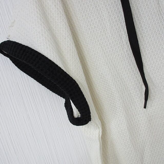 ワッフル編み カジュアル 配色切替 Front釦 フード付き パーカー