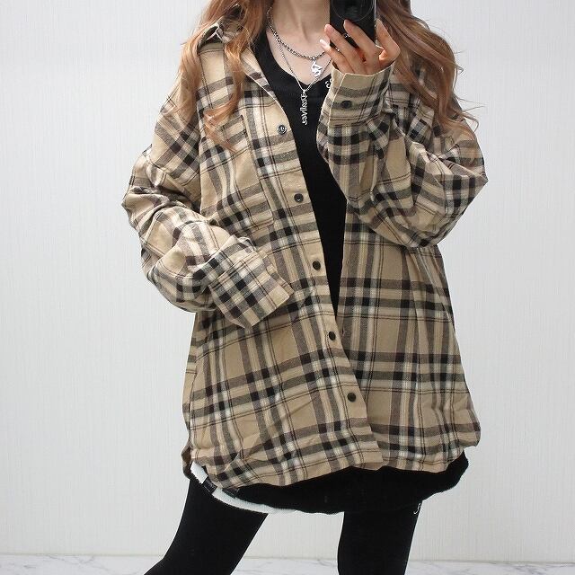 チェック柄 オーバーシャツ BIGシャツ ユニセックス ベージュ