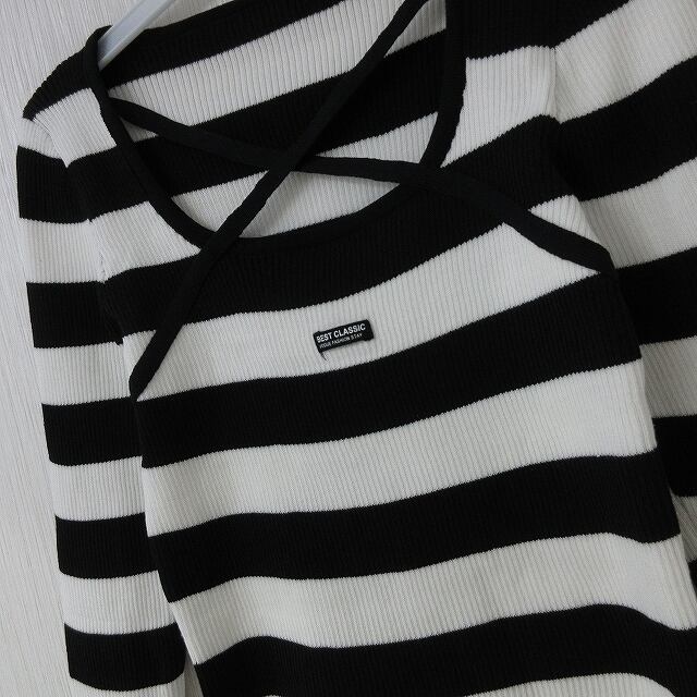 Frontクロス 胸元あき ストレッチリブ バイカラー ボーダーTops
