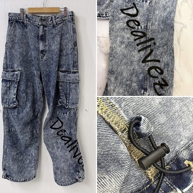 【Dealivez】Wide カーゴデニム ケミカル Side立体ポケット カーゴパンツ BOYSデニム